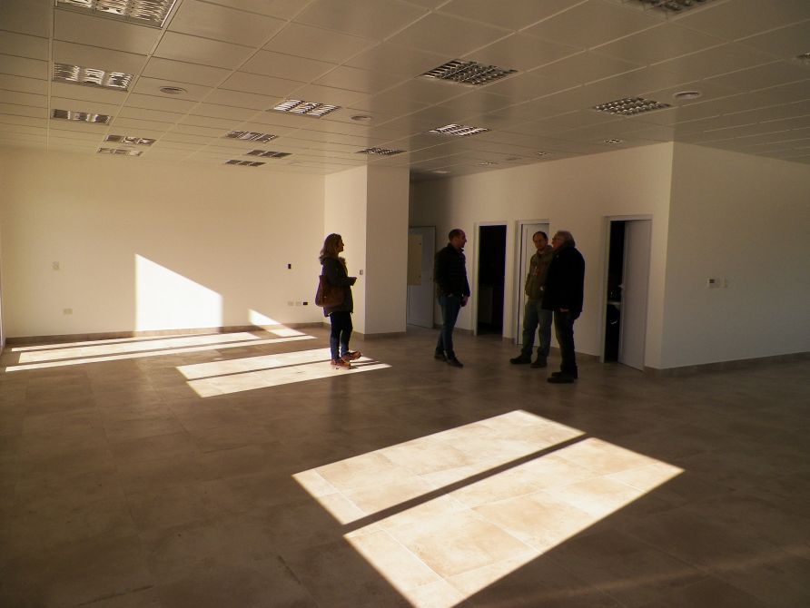 Sector de oficinas, baños y vestuarios de 11,60 metros de ancho por 14,20 metros de largo, sector de oficinas con paredes de mampostería revocadas y pintadas, ventanas de aluminio con vidrios tipo DVH, pisos de porcellanato de 0,60 x 0,60 y cielorrasos. Una cocina con muebles de cocina mesada y bacha de acero inoxidable, según se ve en el anexo fotográfico y dos baños completamente instalado con grifería marca FV y sanitarios marca Ferrum.