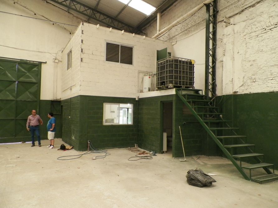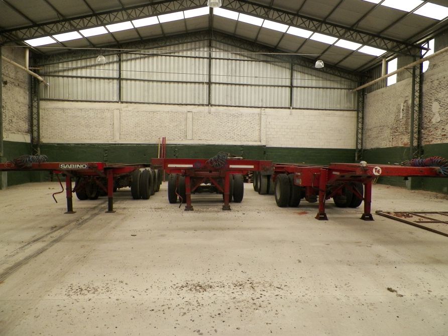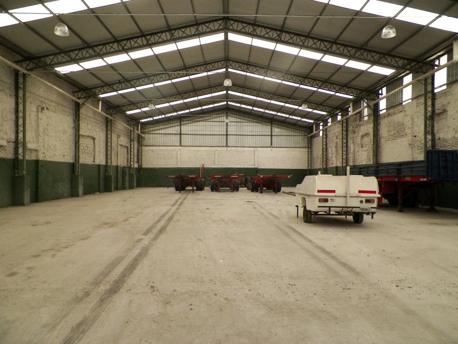 Cuenta con un portón metálico corredizo de ingreso de 6,50 metros de ancho por 4,60 metros de alto. Posee techo a dos aguas de 6 a 9 metros con cabreadas metálicas y chapas de zinc translucidas.