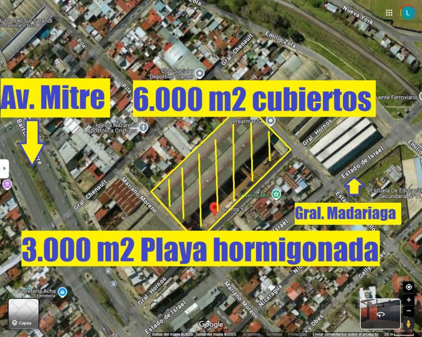 - Playa de Maniobras: totalmente perimetrada y consolidada con 2 portones de acceso por la calle Hornos. Con sectores de pisos de hormigón armado.