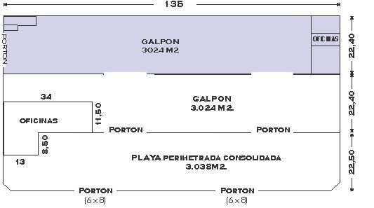 - 2 Portones: de 6 metros de ancho por 8 metros de alto.