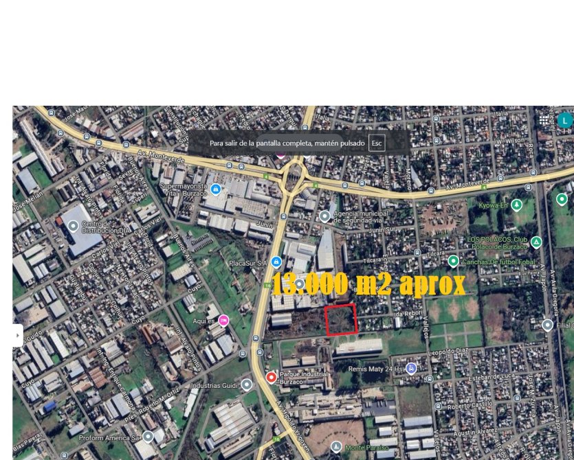 Terreno / lote en alquiler de 13.000 m2 ubicado en el "PARQUE INDUSTRIAL DE BURZACO" con posibilidad a obtener algunos metros mas.