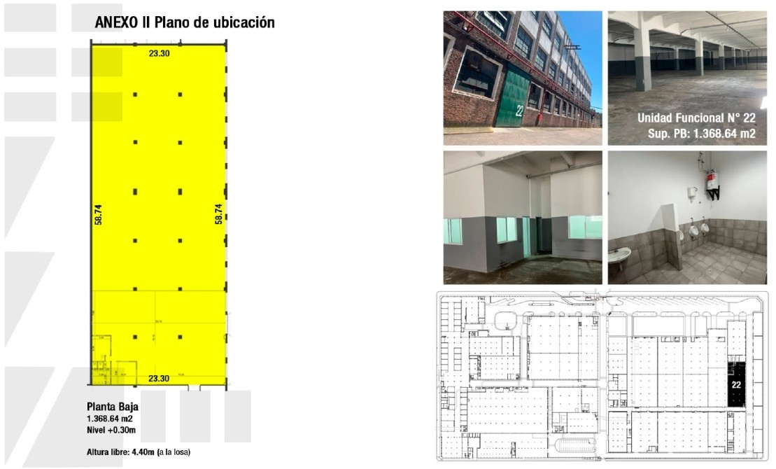 Acerca de la propiedad: Galpón en VENTA en Parque Industrial "La Bernalesa" (PILB) - UF 22 - 1.368,64 M2 distribuidos en planta baja.
